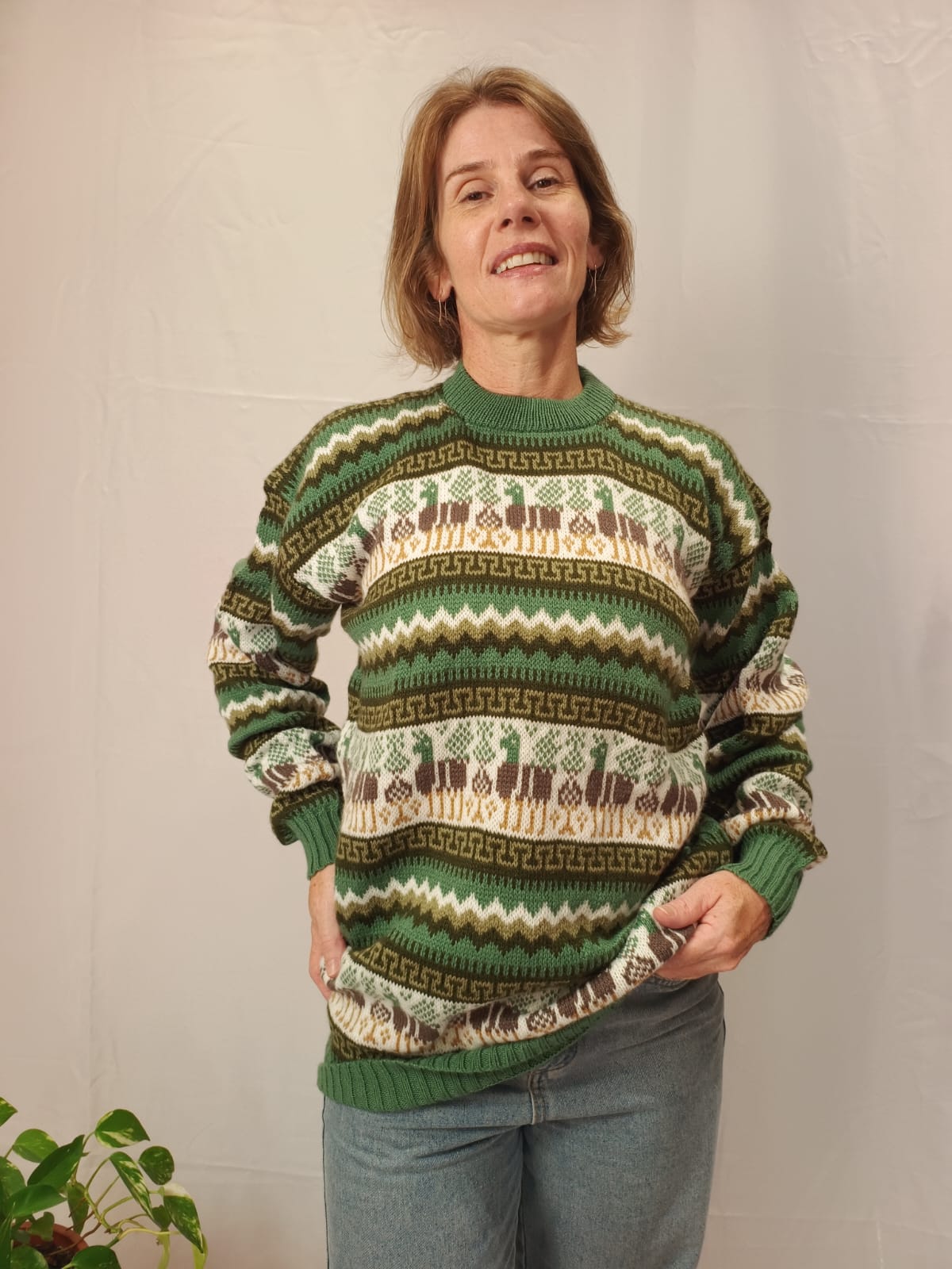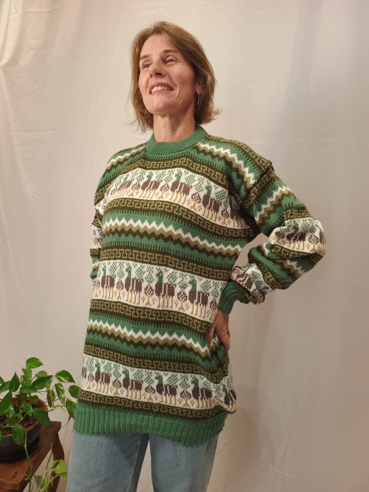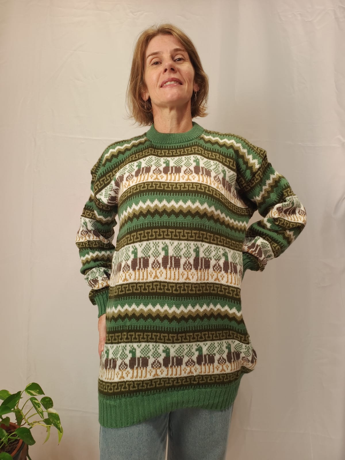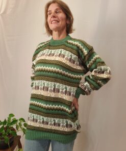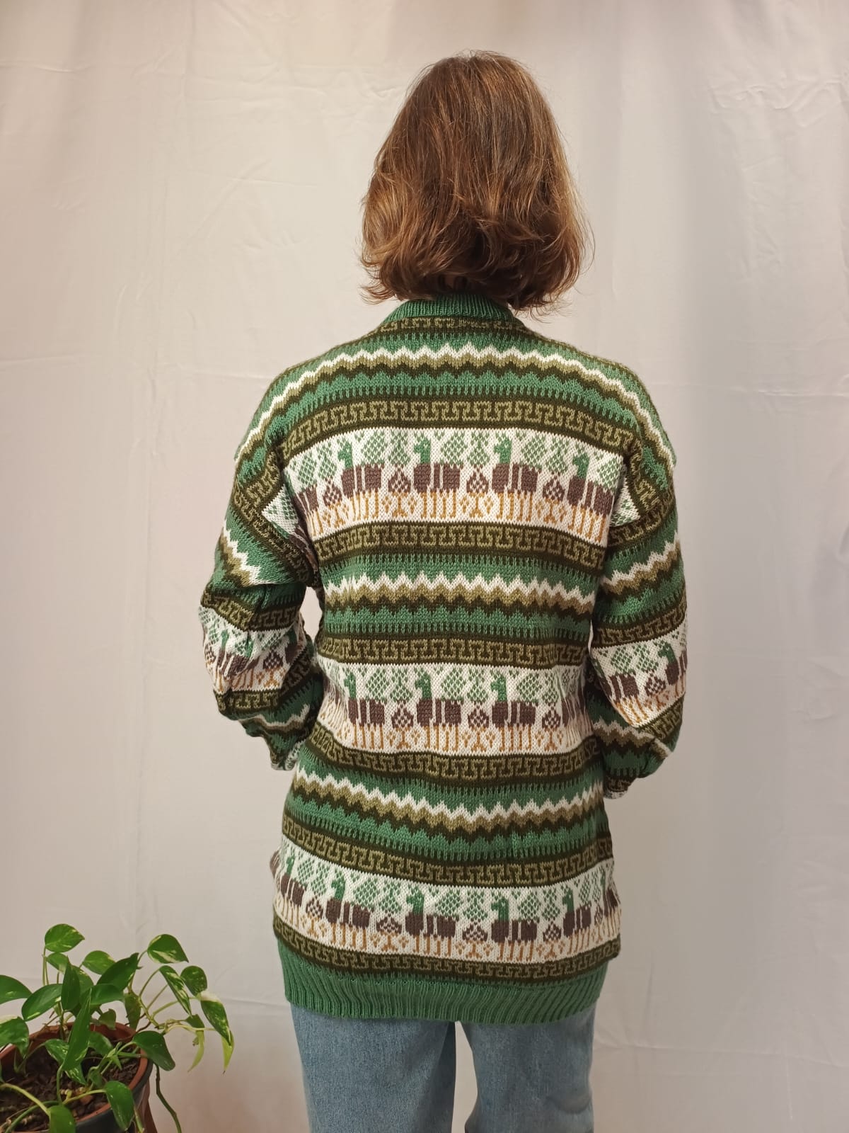 Comprimento: 73 cm. Tórax: 108 cm de circunferência (sem esticar a peça) e comprimento da manga: 53 cm, circunferência da manga: 40 cm.
