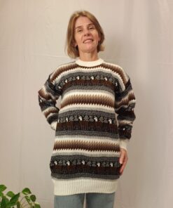 Comprimento: 77 cm. Tórax: 120cm de circunferência (sem esticar a peça) e comprimento da manga: 55 cm circunferência: 46 cm.