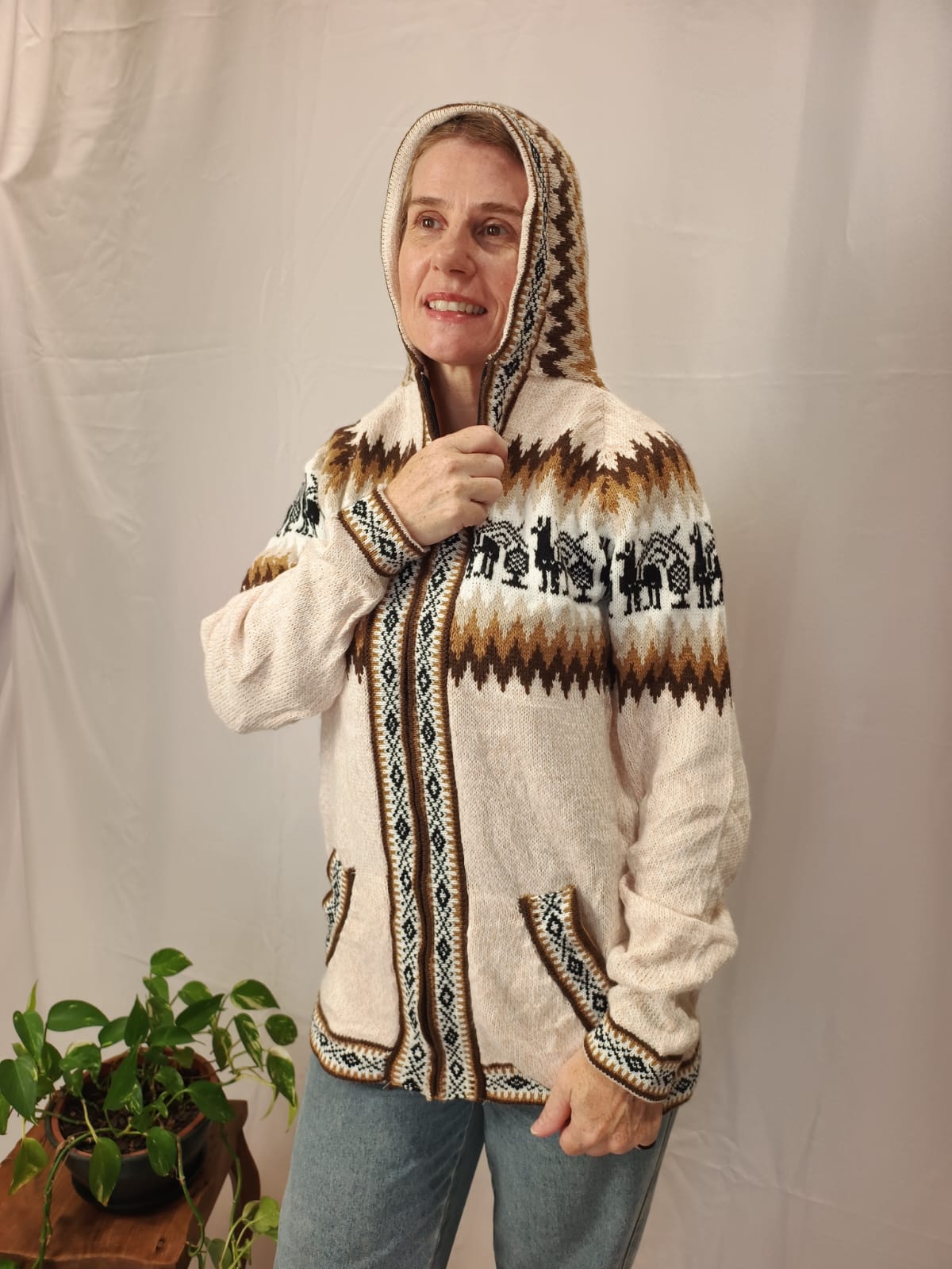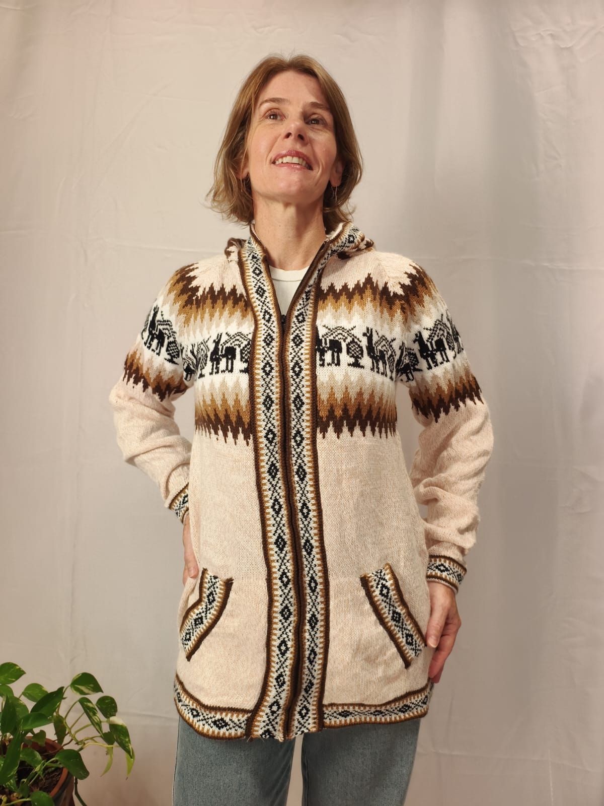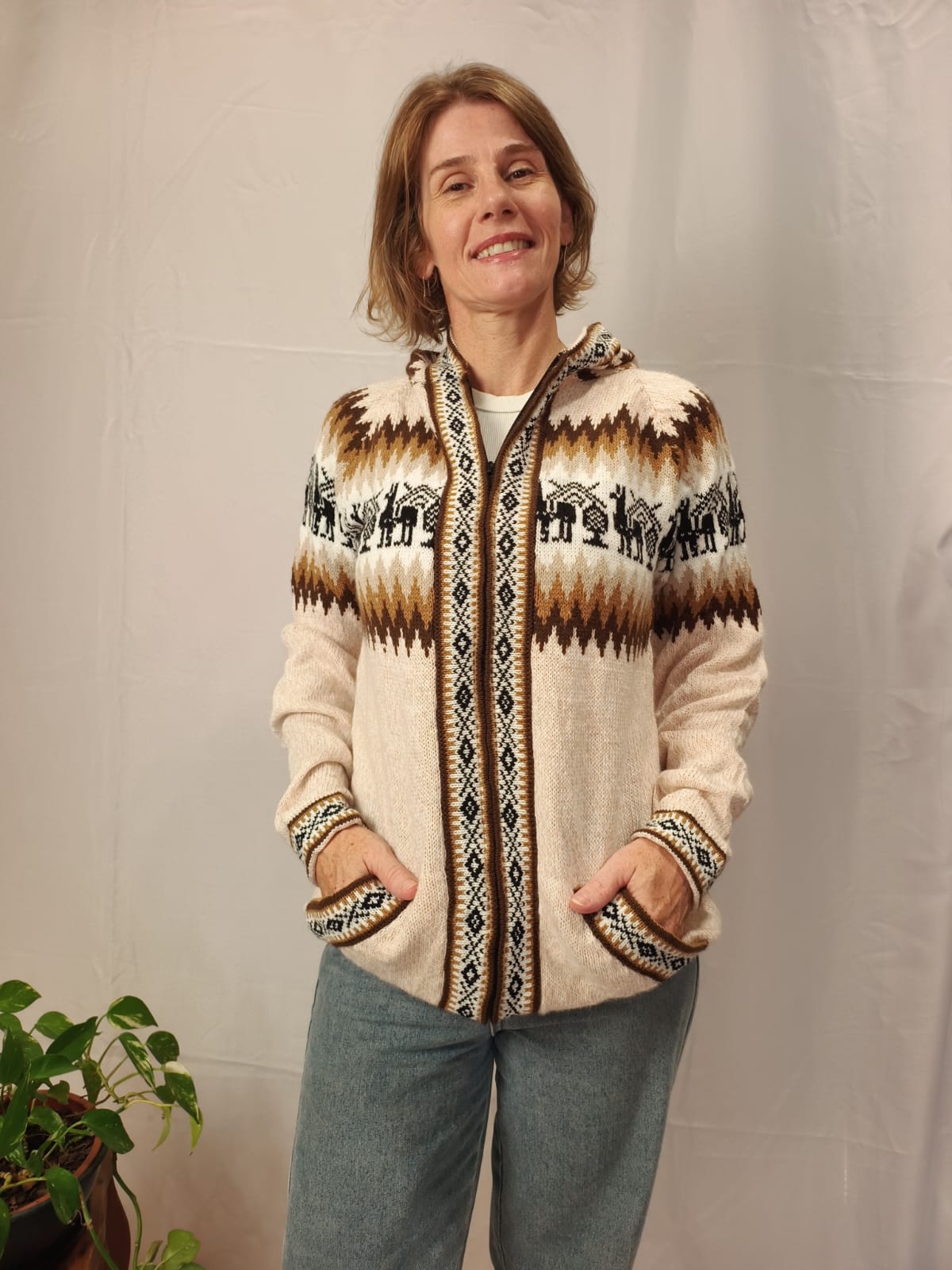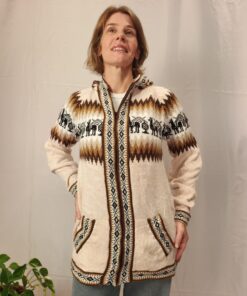 Comprimento: 71 cm. Tórax: 100 cm de circunferência (sem esticar a peça e com o ziper fechado). Comprimento da manga: 54 cm circunferência: 34 cm.