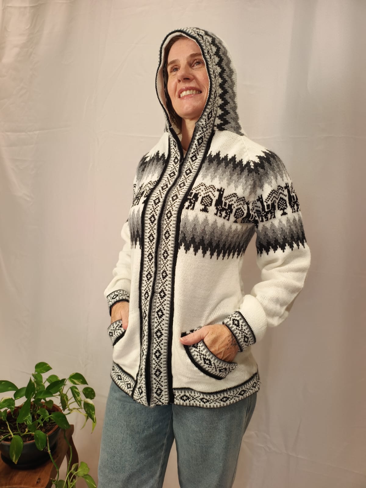 Comprimento: 69 cm. Tórax: 100 cm de circunferência (sem esticar a peça e com o ziper fechado). Comprimento da manga: 52 cm circunferência: 34 cm.