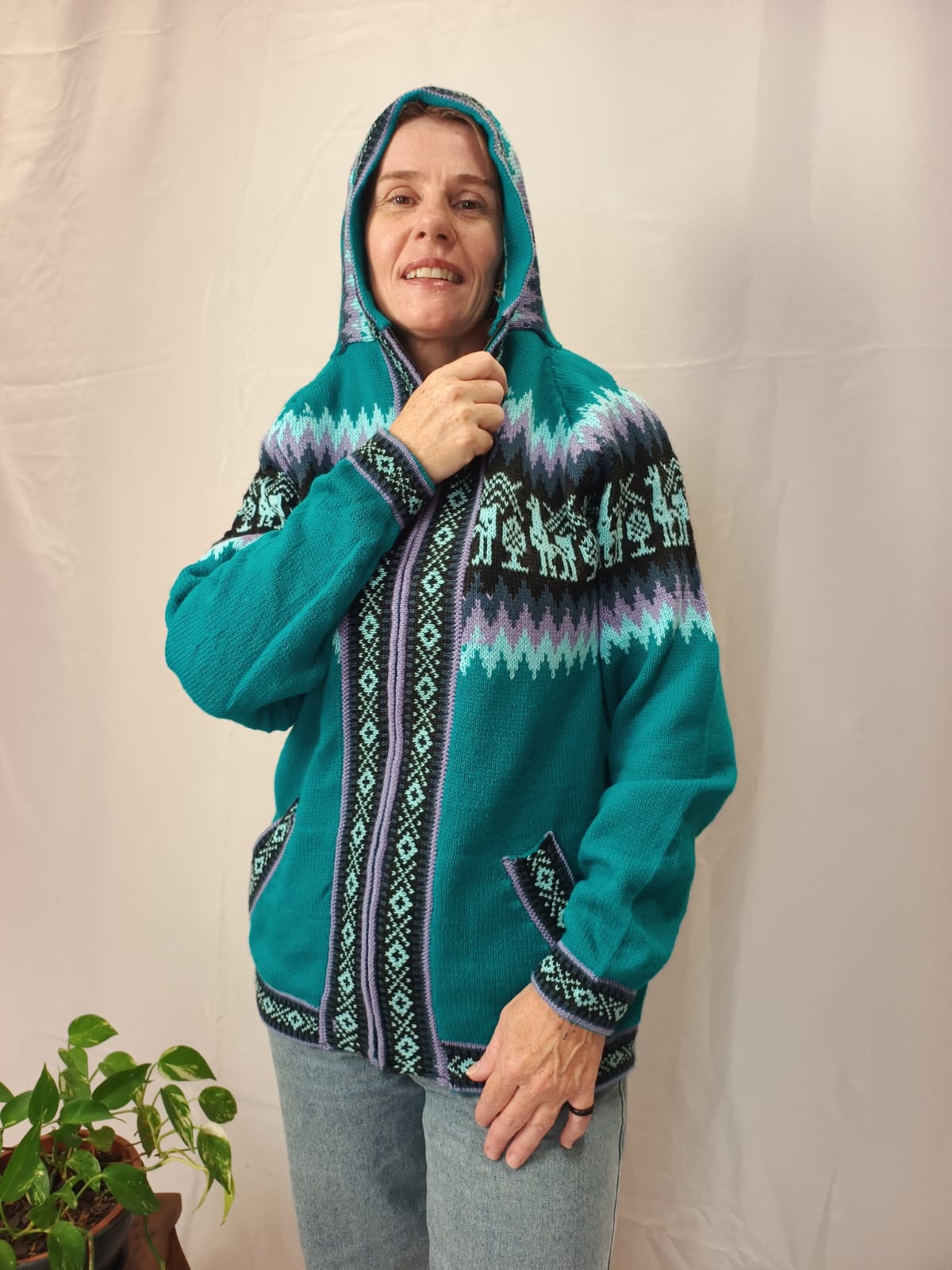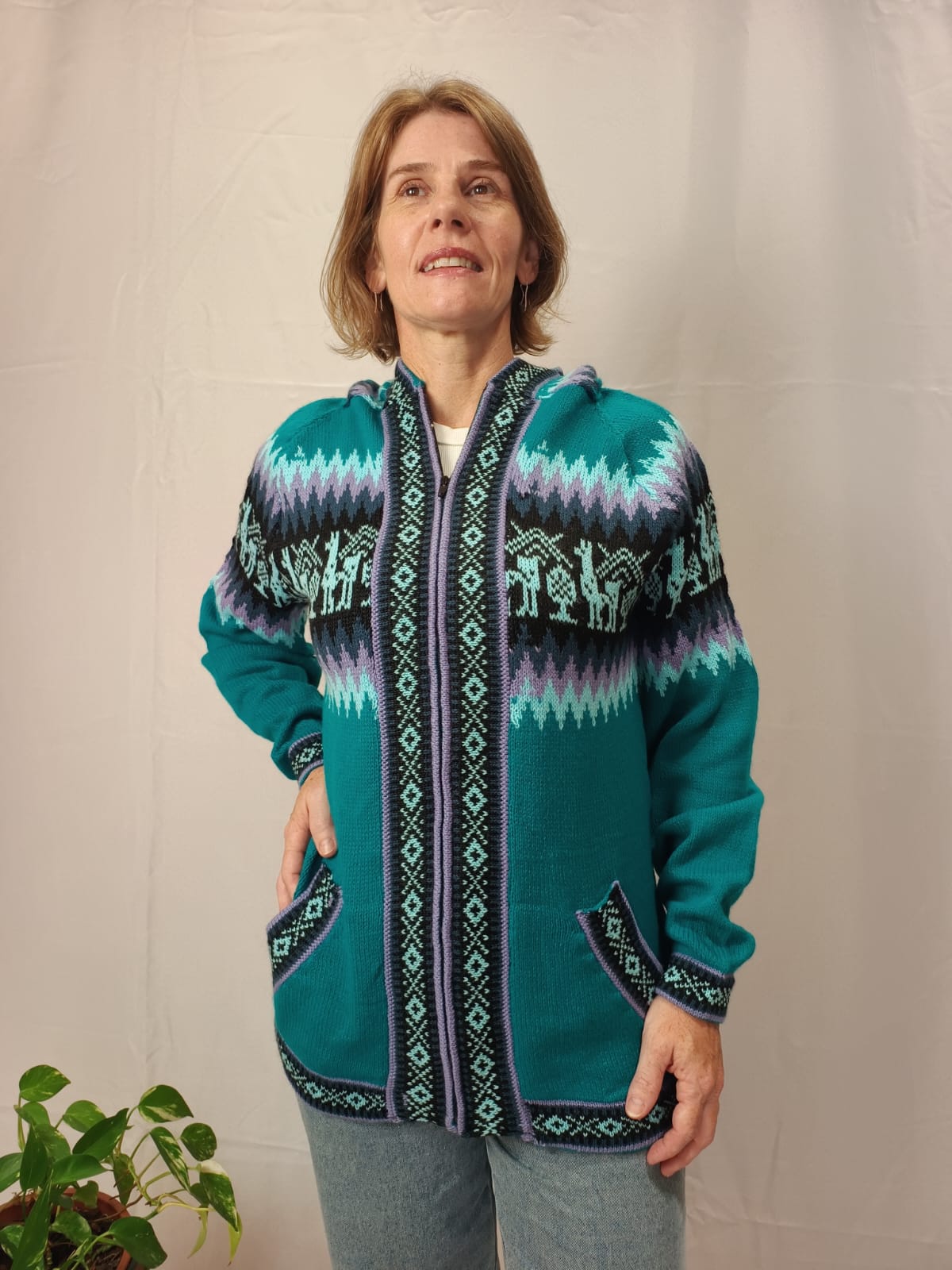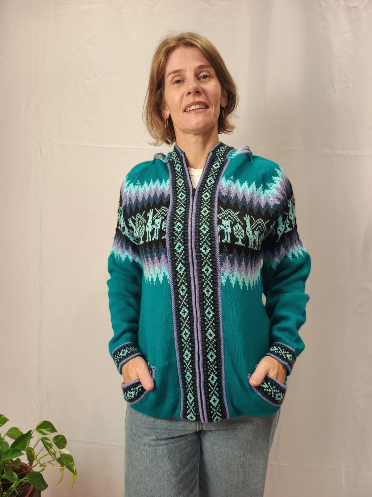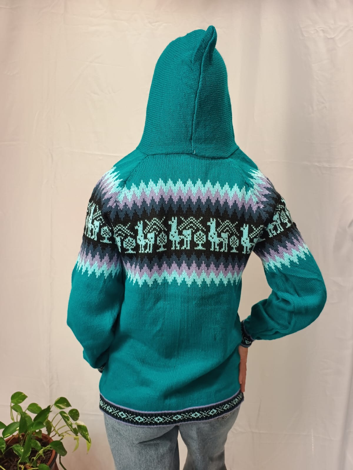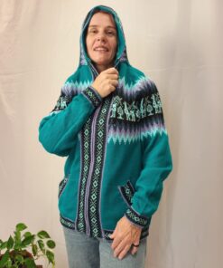 Comprimento: 70 cm. Tórax: 100 cm de circunferência (sem esticar a peça e com o ziper fechado). Comprimento da manga: 52 cm circunferência: 34 cm.