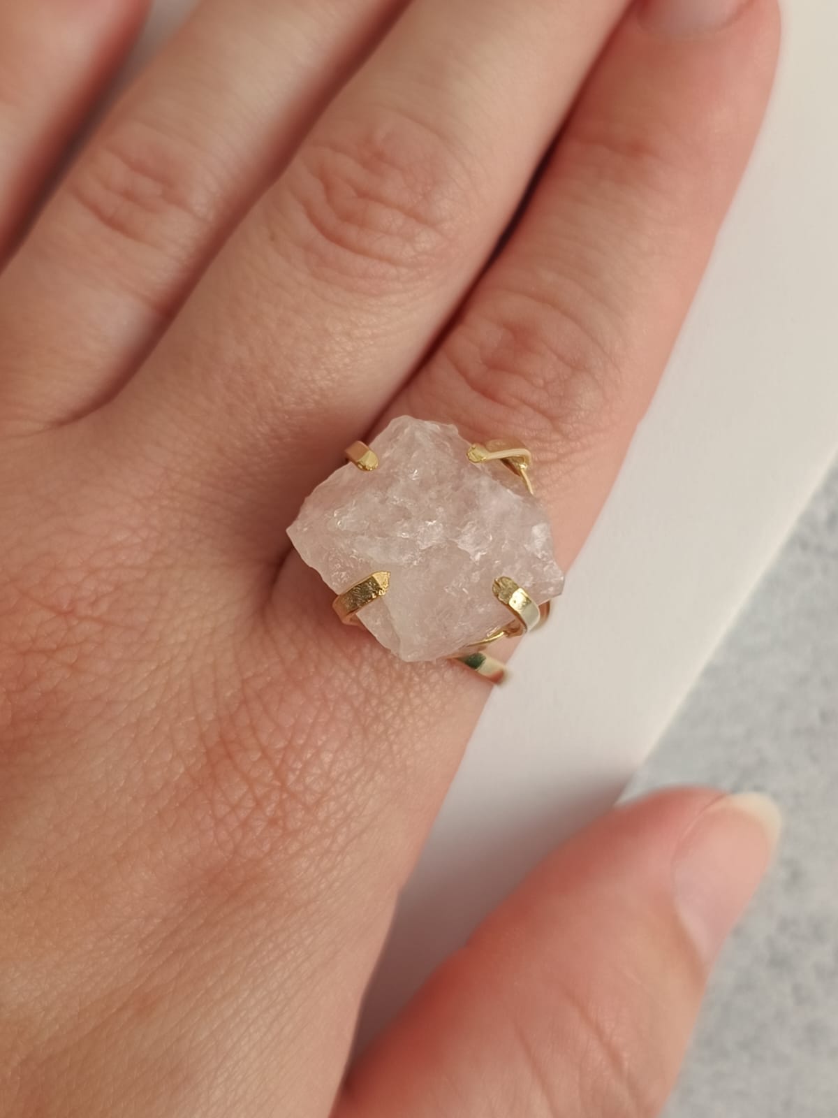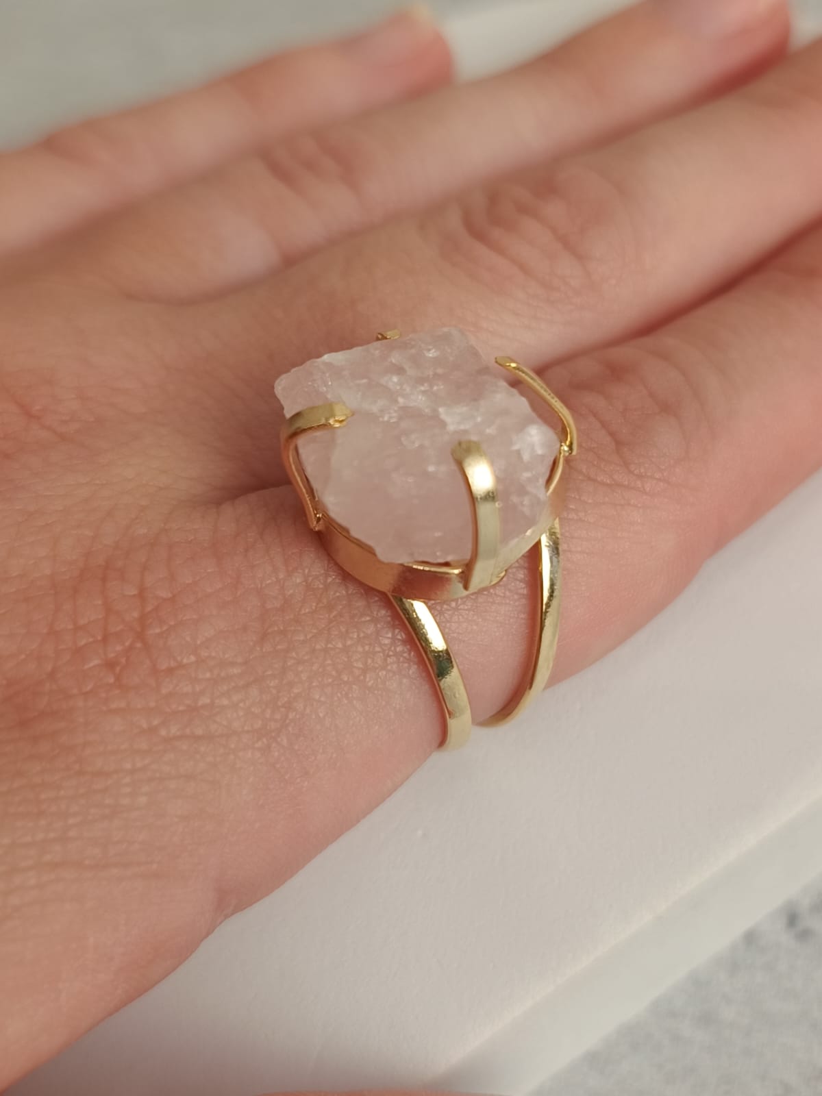 Banhado a ouro e quartzo rosa.