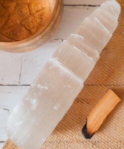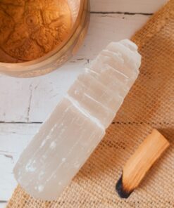 Conhecida por sua capacidade de limpar e purificar energias negativas, a selenita é usada para promover a paz, a clareza mental e a espiritualidade.