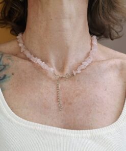 Nylon, bijuteria e quartzo rosa.