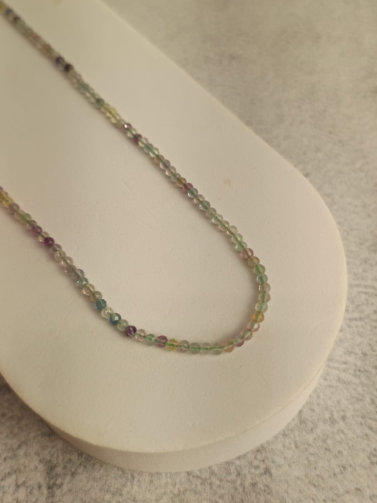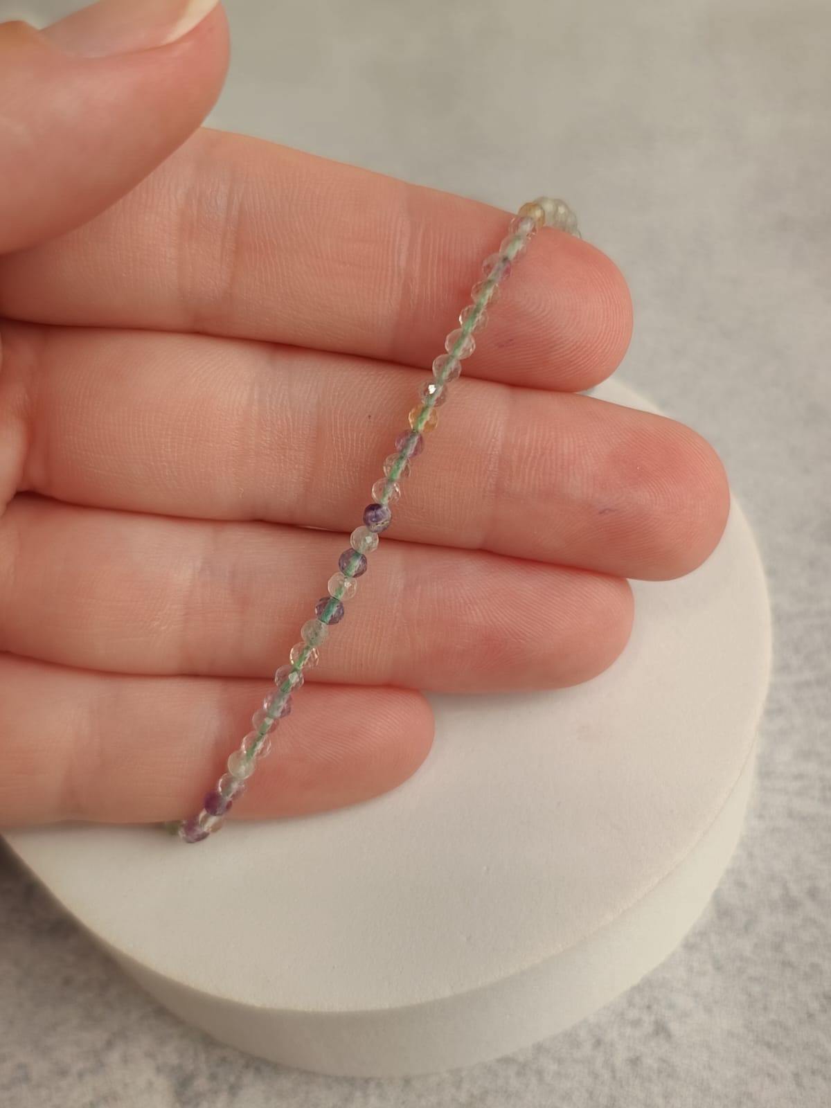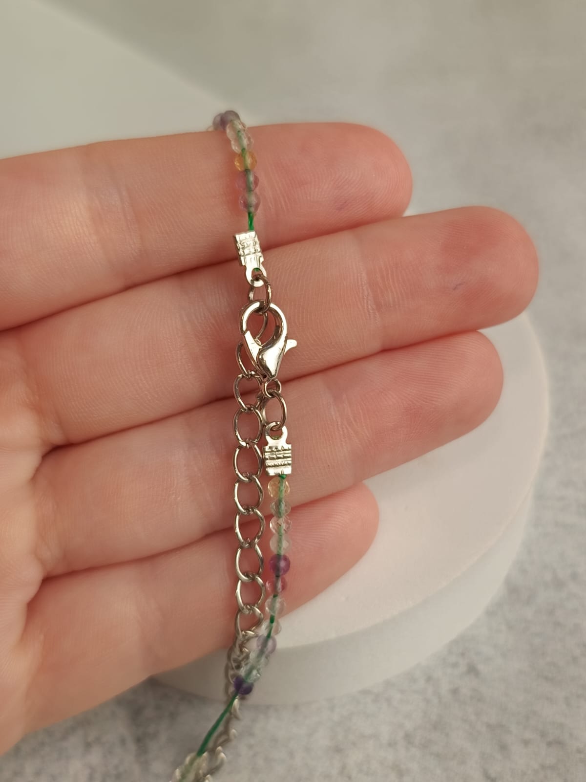Fio, bijuteria e fluorita arco-íris.