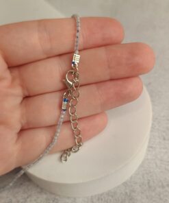 Colar com aproximadamente 40 cm de comprimento, mais 5 cm de extensor.