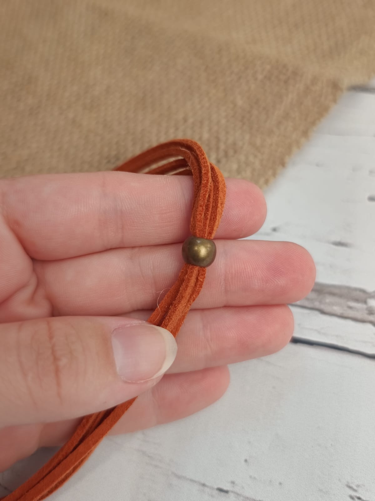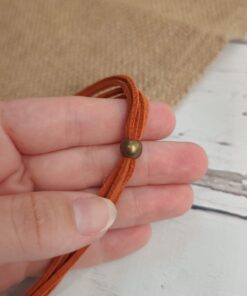Corrente ajustável, com aproximadamente 90 cm no comprimento máximo.