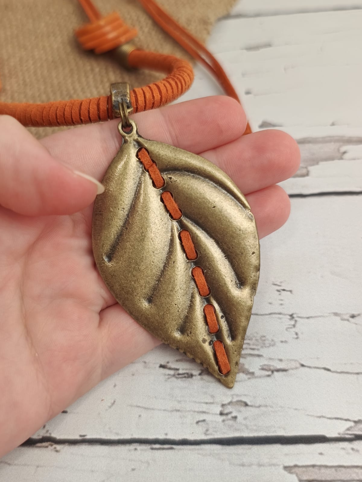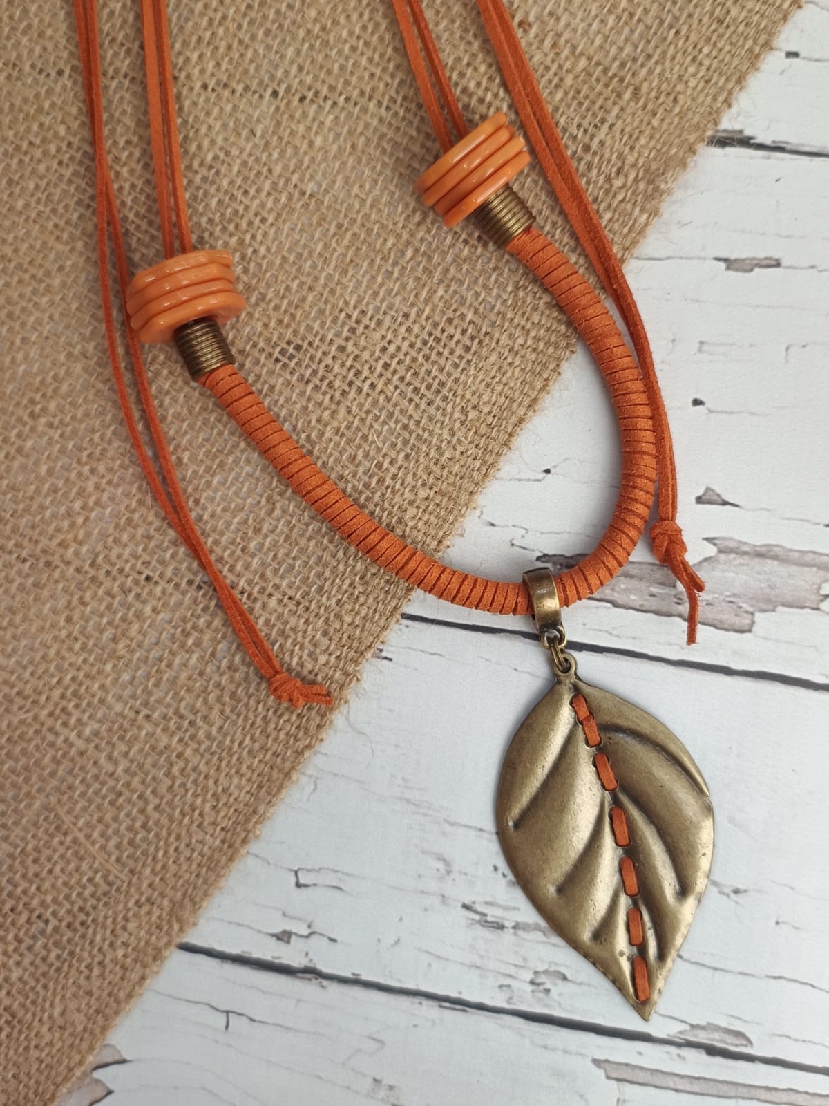 Colar Laranja Courino Com Folha