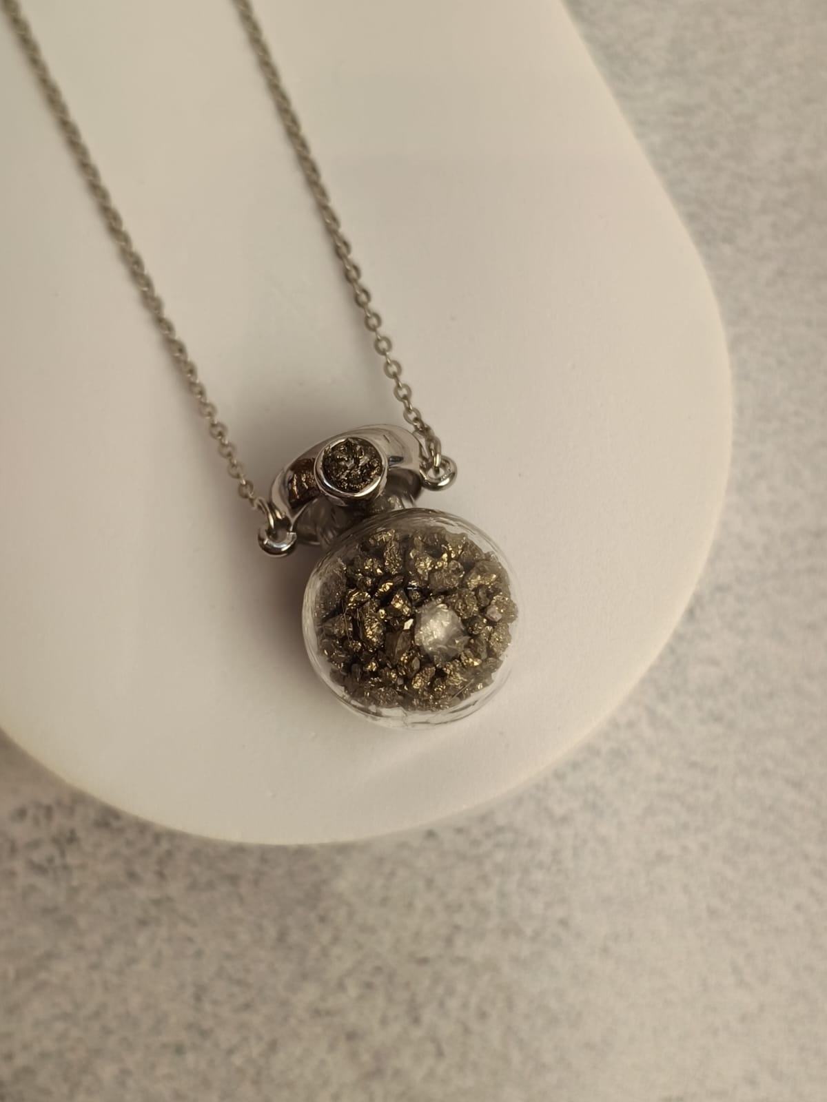 Corrente semijoia folheada a ródio e pirita.