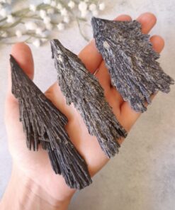 Uma pedra de proteção e enraizamento, a cianita negra é usada para transmutar energias negativas e promover a estabilidade emocional.