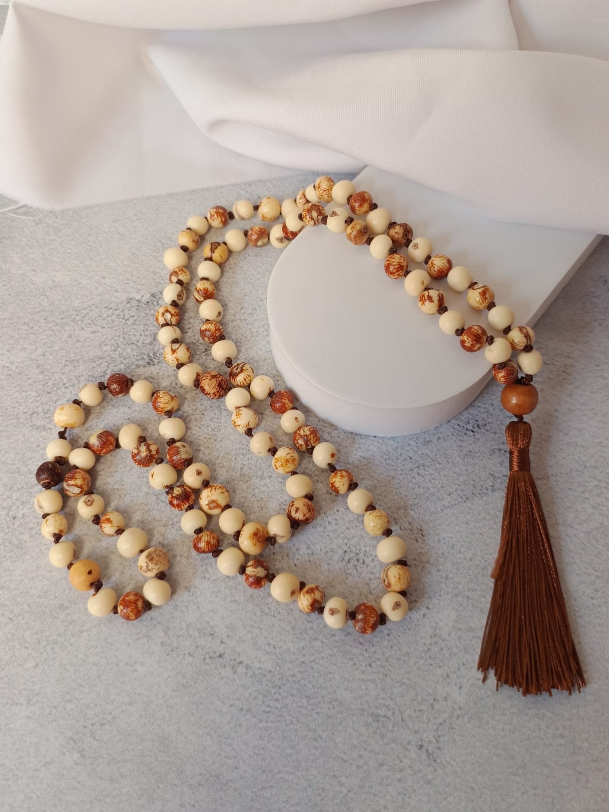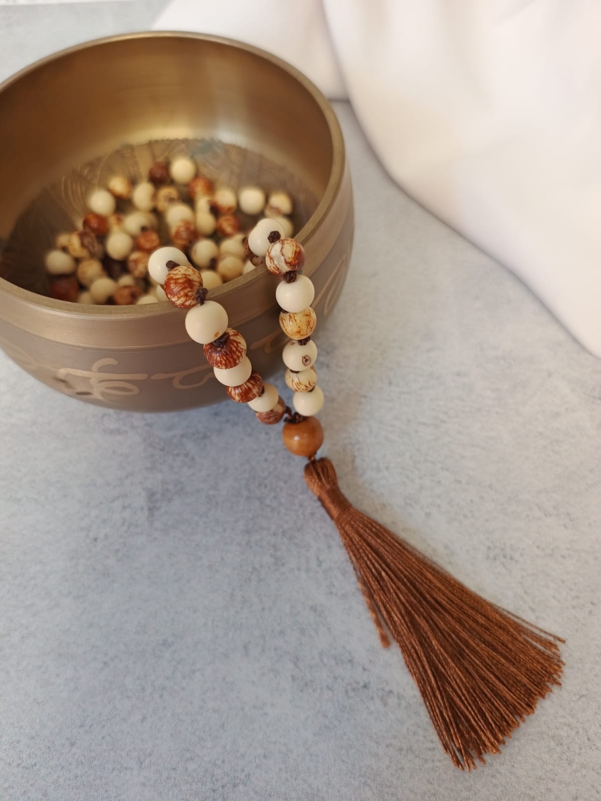 Nossos japamalas são meticulosamente confeccionados à mão, com sementes naturais. Por essa razão, é possível que o japamala que você receba não seja exatamente idêntico ao da imagem. Variações sutis nas sementes e no comprimento podem ocorrer.