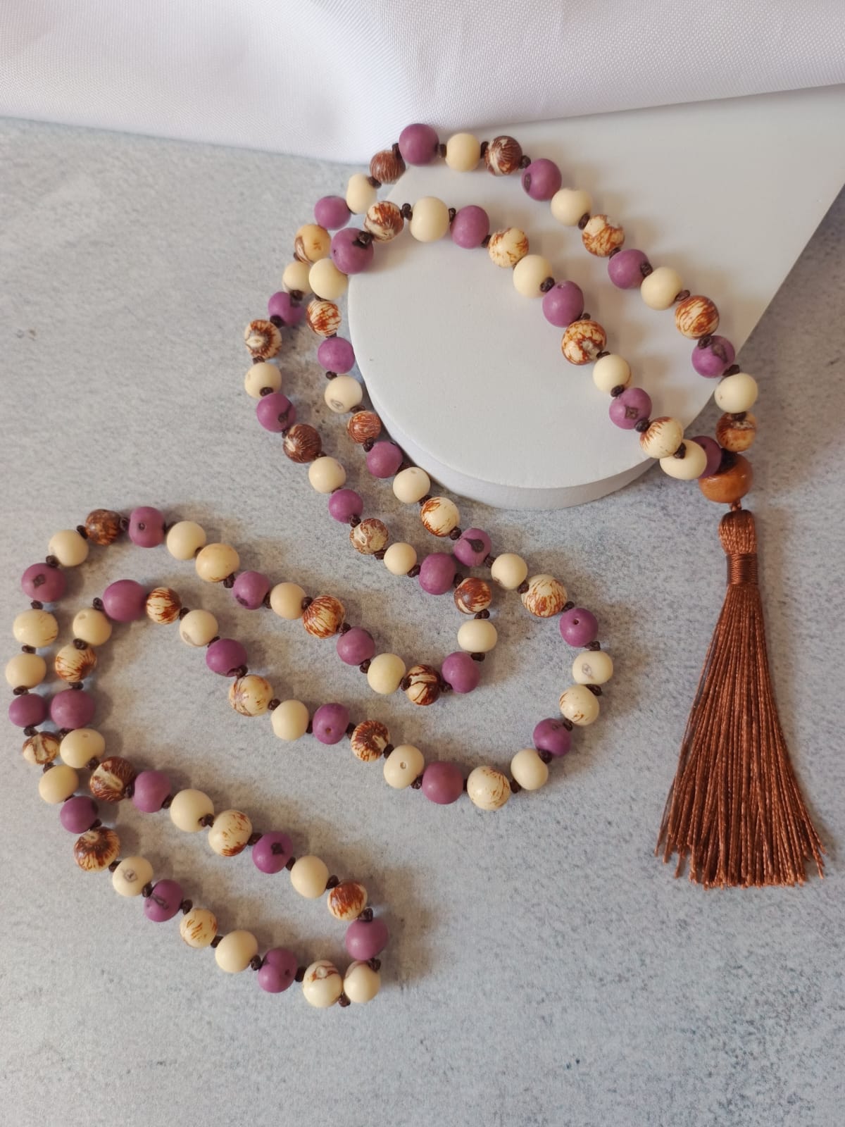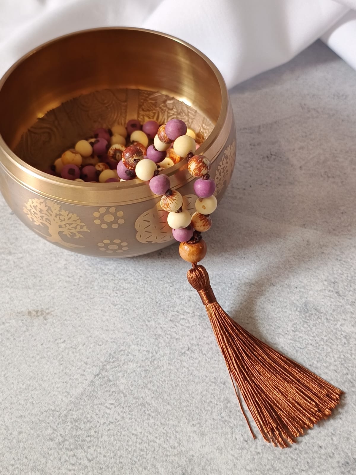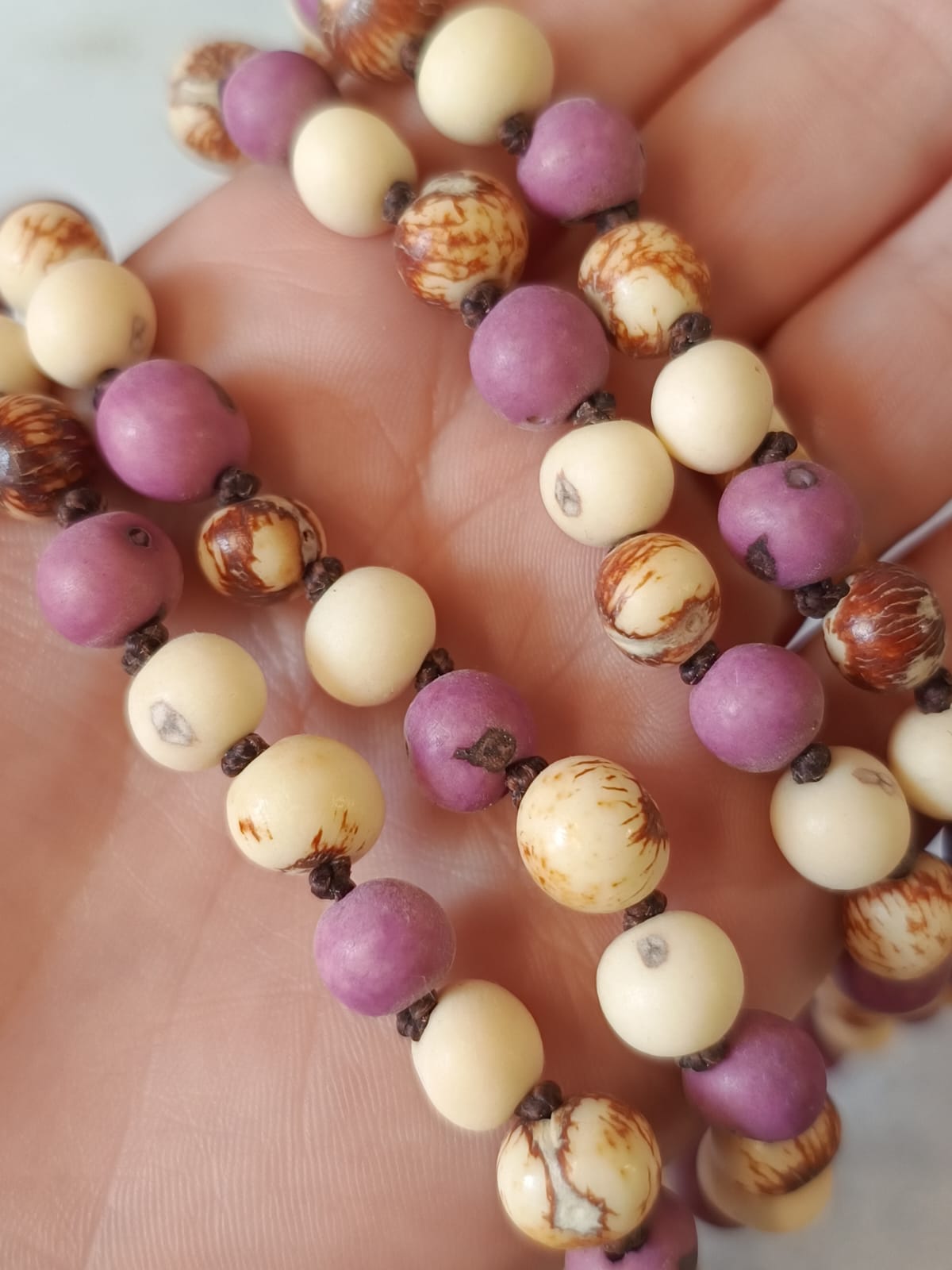 Nossos japamalas são meticulosamente confeccionados à mão, com sementes naturais. Por essa razão, é possível que o japamala que você receba não seja exatamente idêntico ao da imagem. Variações sutis nas sementes e no comprimento podem ocorrer.