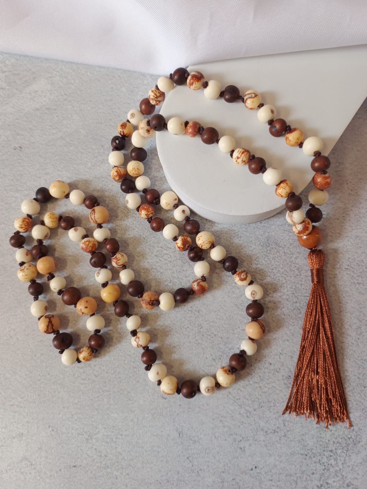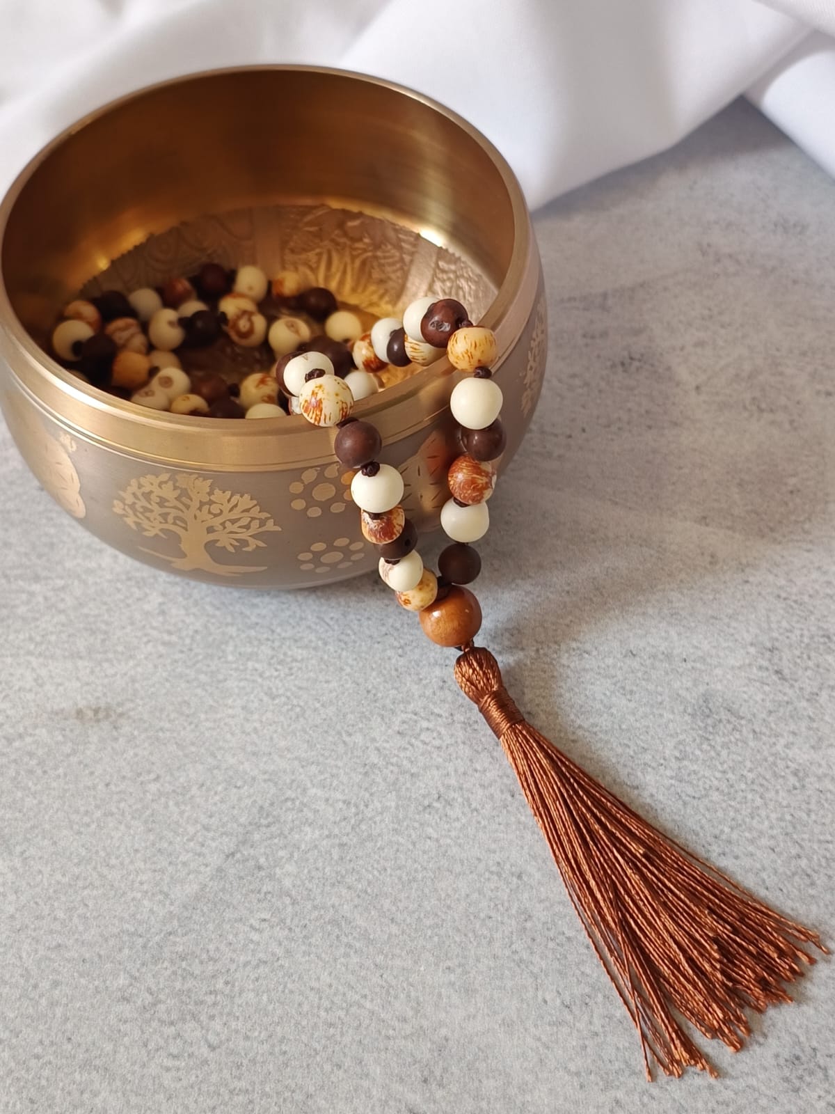 Nossos japamalas são meticulosamente confeccionados à mão, com sementes naturais. Por essa razão, é possível que o japamala que você receba não seja exatamente idêntico ao da imagem. Variações sutis nas sementes e no comprimento podem ocorrer.