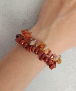 Jaspe vermelho traz energia e firmeza, enquanto a cornalina desperta coragem, foco e entusiasmo.