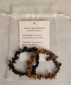 Força e proteção. Olho de tigre trarz coragem, obsidiana afasta energias densas.