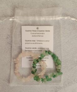 Amor e renovação lado a lado. Quartzo rosa acolhe, quartzo verde harmoniza e traz bem -estar.