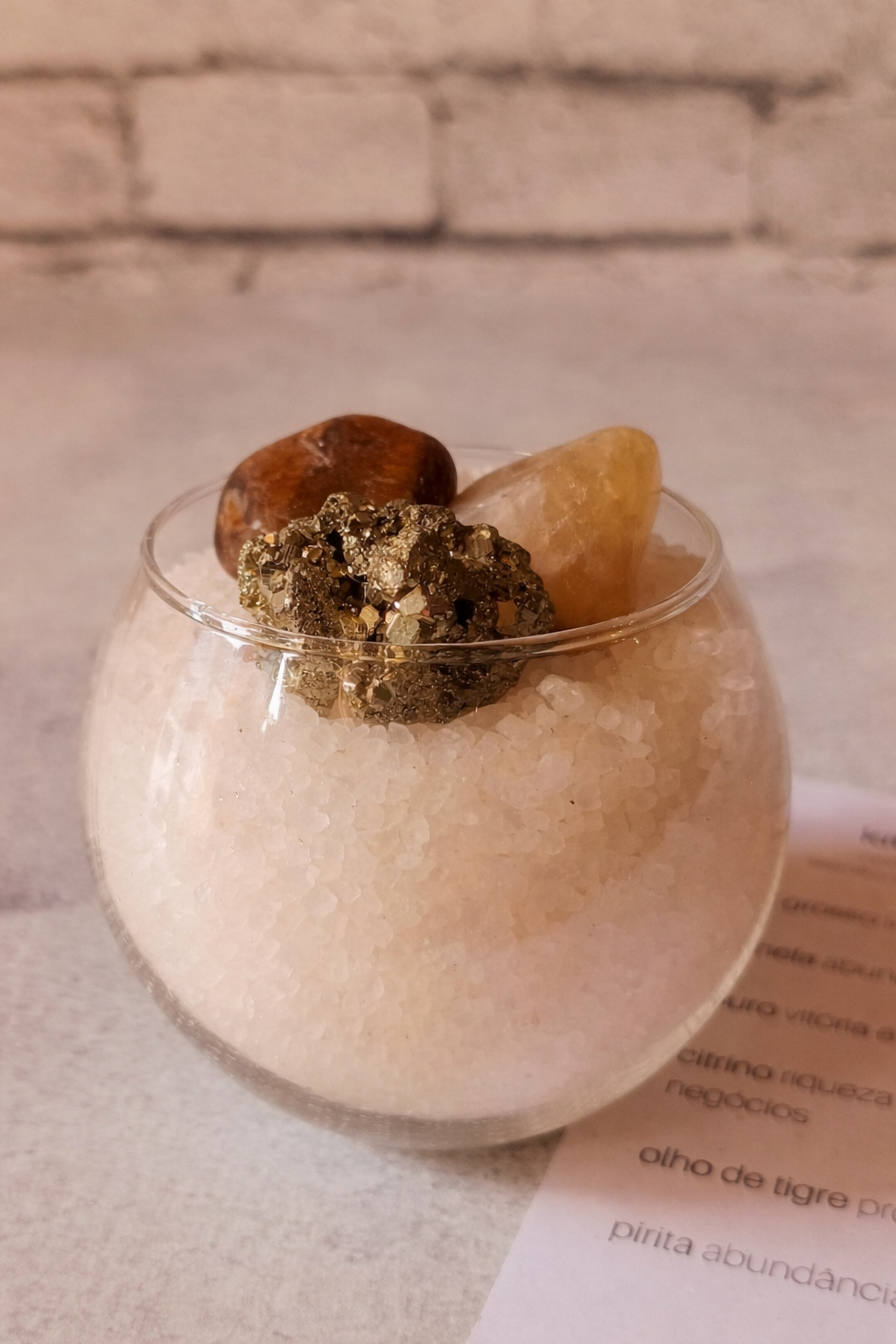 Descubra o poder da prosperidade com nosso Kit Taça de Sal Grosso para Prosperidade cuidadosamente preparado. Este kit exclusivo inclui ingredientes poderosos para atrair abundância e prosperidade em sua vida. O sal grosso purifica e limpa as energias negativas. A ametista queimada é conhecida por atrair riqueza e sucesso nos negócios. O olho de tigre promove proteção financeira, e a pirita é associada à abundância e boa sorte. Acompanhado de um informativo detalhado, este kit é sua ferramenta para manifestar uma vida próspera e abundante em todos os aspectos.