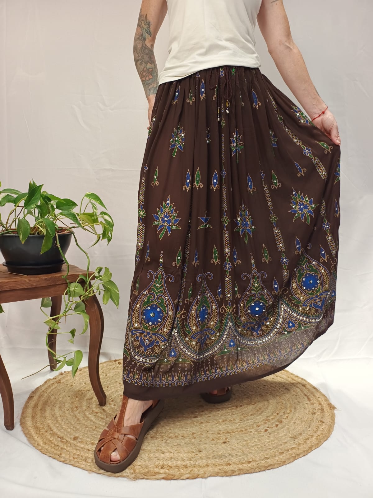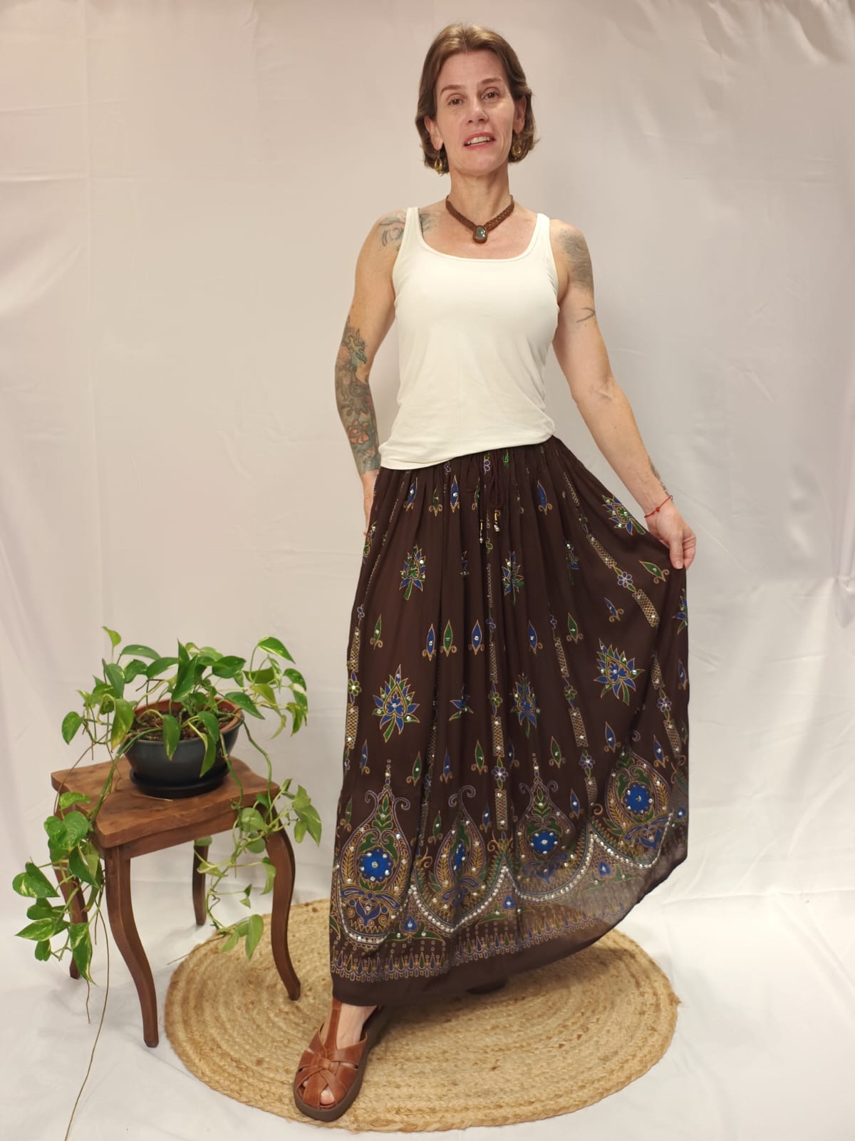 Saia Indiana Longa Viscose Lantejoula