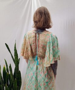 Vestido indiano em poliéster Premium com toque de seda e detalhes em dourado.