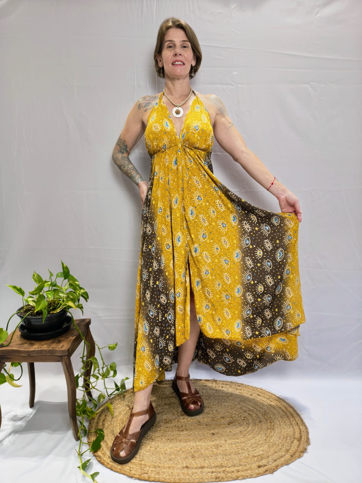 Vestido com fenda.
