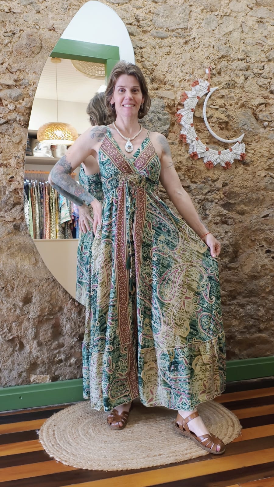 A modelo mede 1,60 e veste número 38. Medida do busto: 85 cm