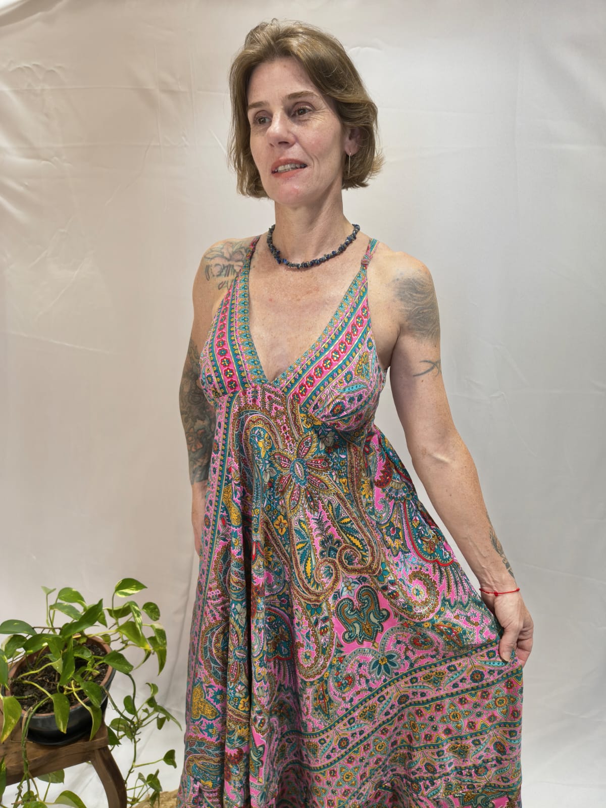 A modelo mede 1,60 e veste número 38. Medida do busto: 85 cm
