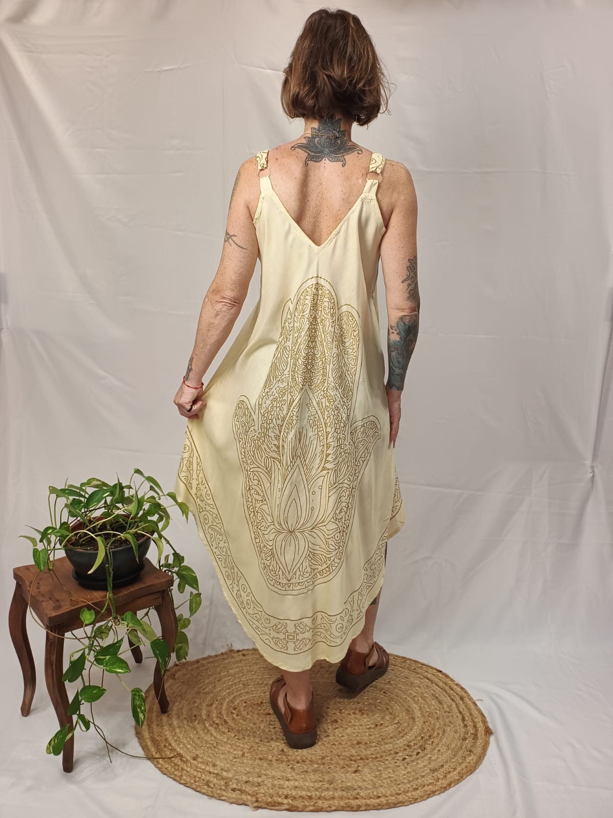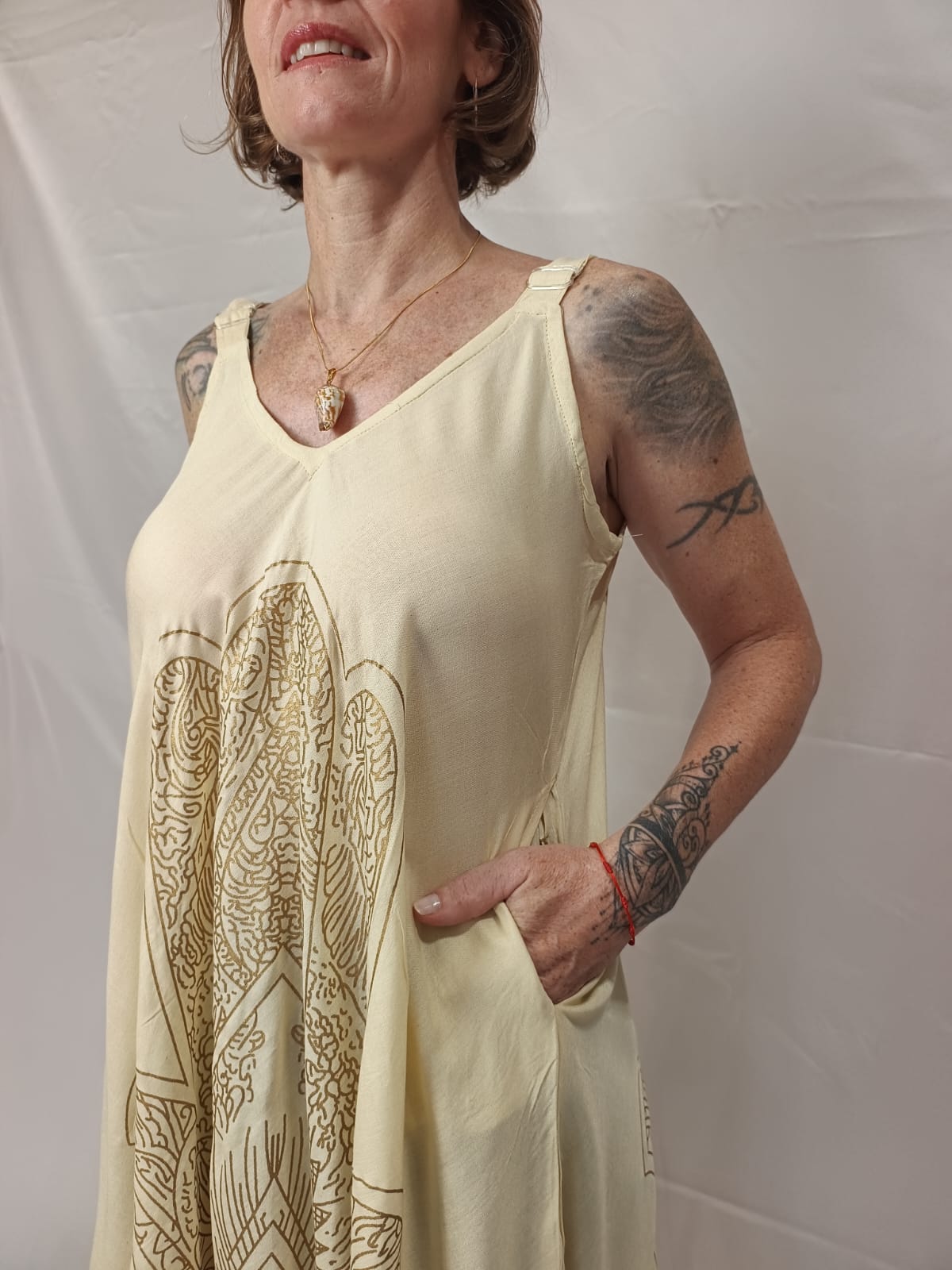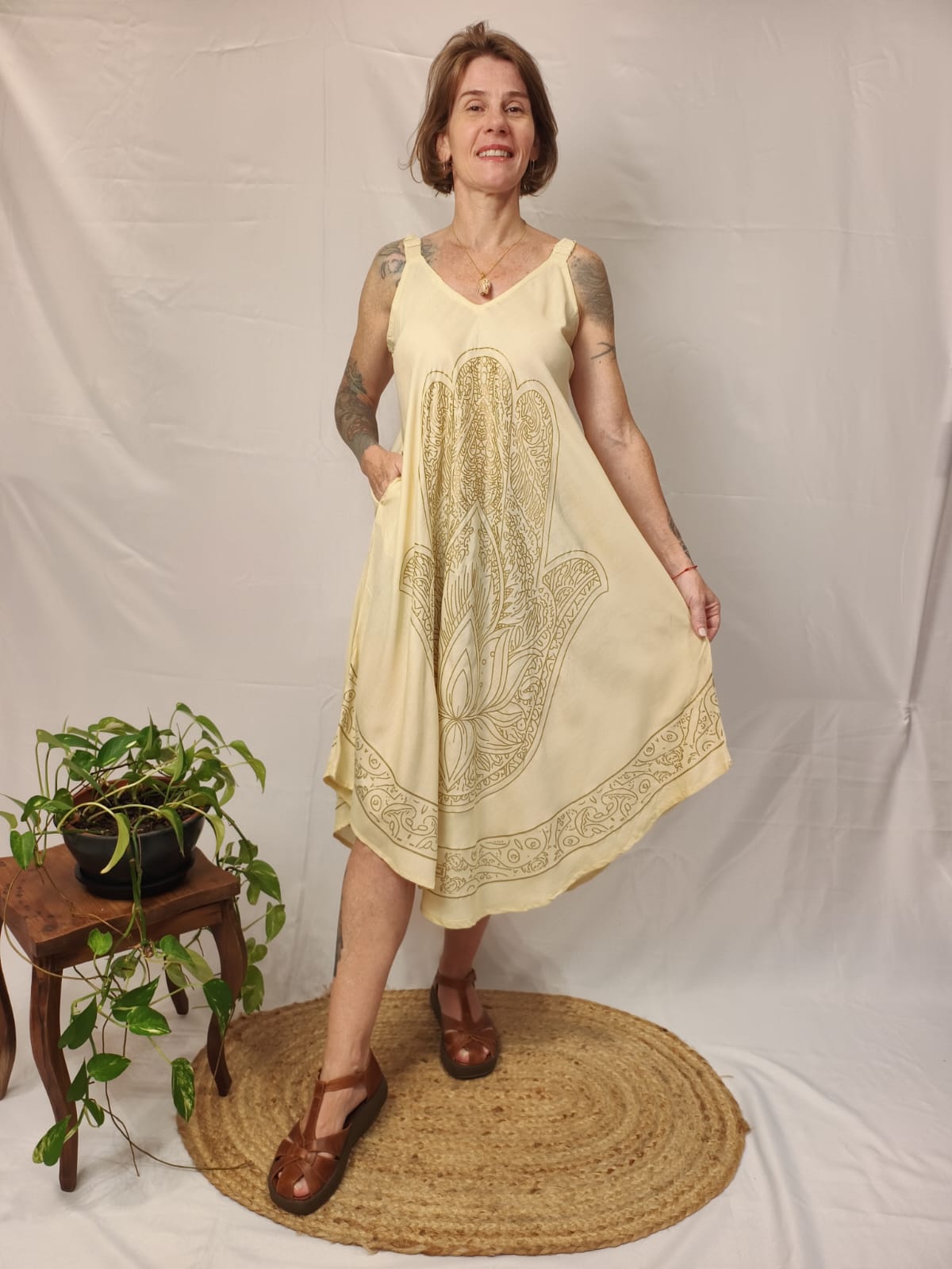 Vestido Indiano Trapézio Viscose Com Bolsos
