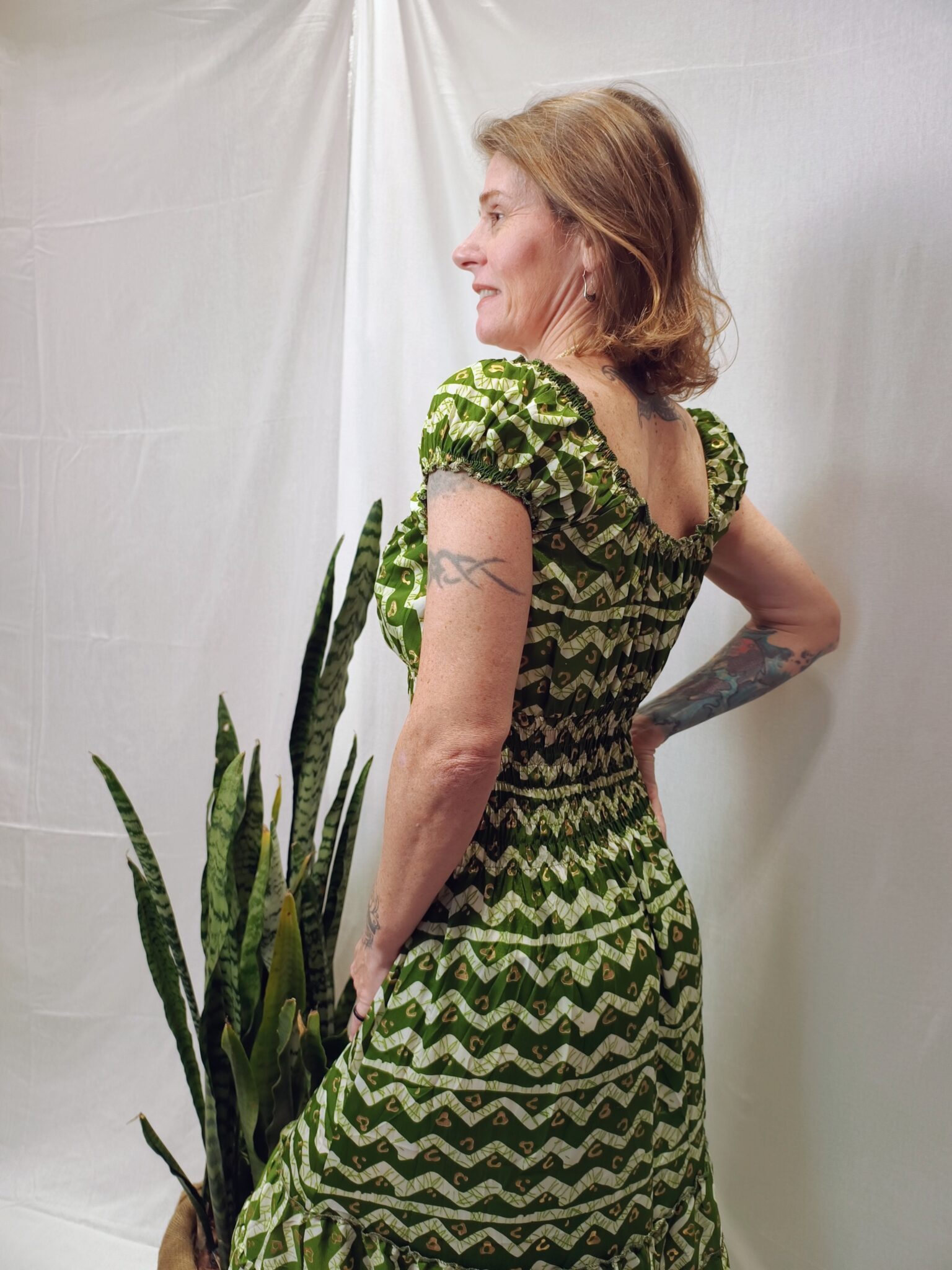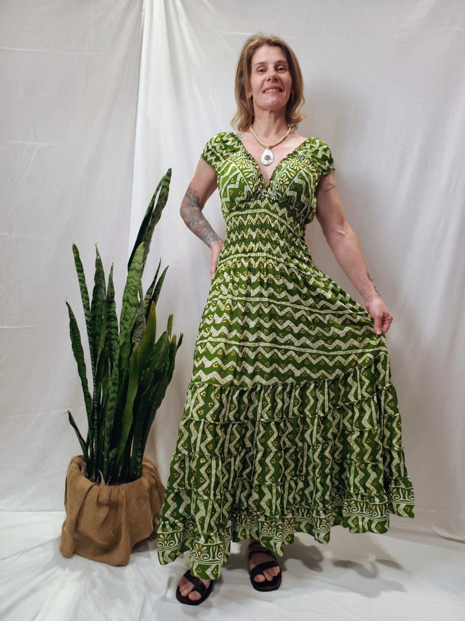 A modelo mede 1,60 e veste número 38.